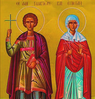 ΑΓΙΟΙ ΓΑΛΑΚΤΙΩΝ ΚΑΙ ΕΠΙΣΤΗΜΗ, ΜΑΡΤΥΡΕΣ         ΒΙΟΓΡΑΦΙΑ   Οι Άγιοι Γαλακτίων και Επιστήμη έζησαν τον 3ο αιώνα μ.Χ., όταν αυτοκράτορας ήταν ο Δέκιος.Οι Έλληνες γονείς του Γαλακτίωνα, Κλειτοφών και Λευκίππη, ήταν πρώτα ειδωλολάτρες. Κάποιος, όμως, ιερομόναχος, που ονομαζόταν Ονούφριος, τους προσείλκυσε στη χριστιανική πίστη. Από τότε διέθεταν τα πλούτη τους σε κάθε αγαθοεργία. Το δε γιο τους Γαλακτίωνα ανέθρεψαν «ἐν παιδείᾳ καὶ νουθεσίᾳ Κυρίου». Δηλαδή, με παιδαγωγία και νουθεσία, σύμφωνη με το θέλημα του Κυρίου. Και η παιδαγωγία αυτή δεν άργησε να φέρει τους θαυμαστούς καρπούς της. Ο Γαλακτίων όταν μεγάλωσε, νυμφεύθηκε μία ωραία κόρη, την Επιστήμη, την οποία ο ίδιος είλκυσε στο Χριστό.Η ζωή τους κυλούσε αφιερωμένη στην υπηρεσία του λό...